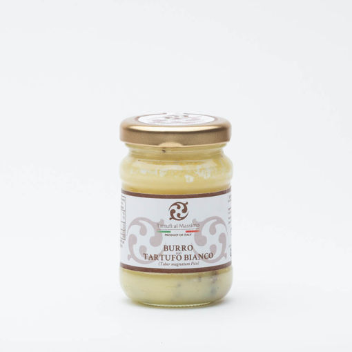 BURRO AL TARTUFO BIANCO GR.75 È un condimento Artigianale a base di Burro e Tartufi Bianchi,ideale per condire primi piatti e paste ripiene. Ottimo anche spalmato su pane per crostini e tartine.