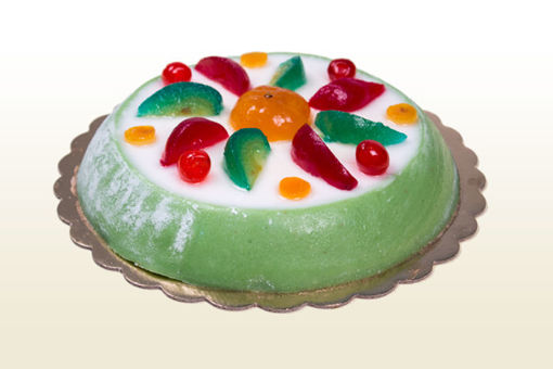 Variante in miniatura della cassata siciliana.Con frutta candita ed uno strato di pasta di mandorle.