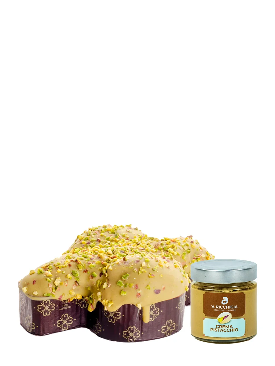 La Colomba glassata al Pistacchio è sempre tra i gusti più richiesti. Il suo gusto invitante nasce da una selezione accurata di pistacchi pregiati e da finissimo cioccolato bianco.